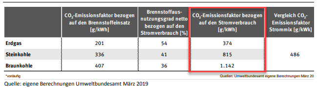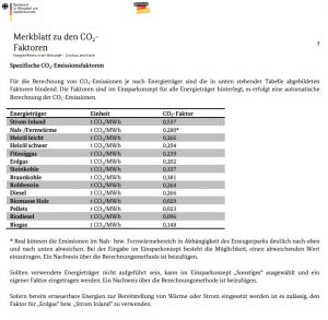 Faktoren zur Berechnung des CO2-Ausstoßes bei der Stromerzeugung: