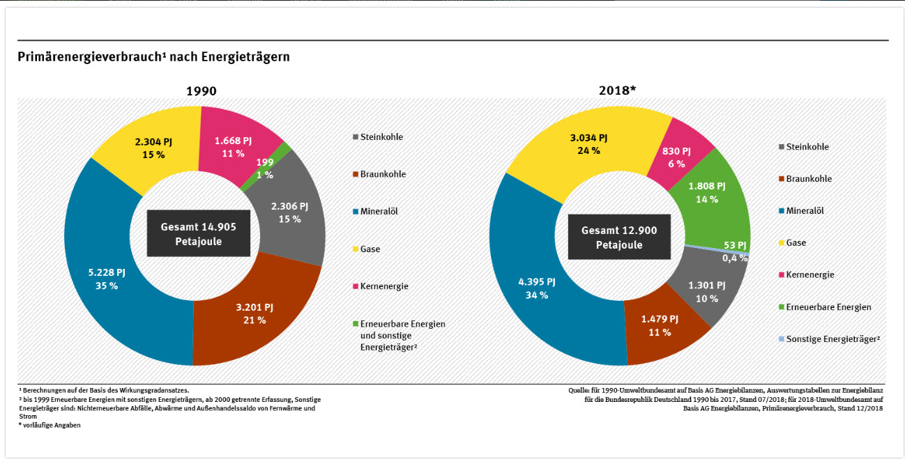 Die Grafik des Bundeswirtschaftsministeriums zeigt sehr schön den doch mit 3% Windkraft und 1,5% Solarkraft recht geringen Anteil von Wind und Sonnenkraft am gesamten Energiebedarfs Deutschlands.