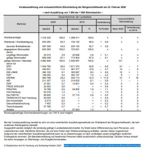 Die AfD ist wiederum in der Hamburger Bürgerschaft vertreten. Mit dem geringsten Verlust (0,8%) aller Parteien, die Verluste einfuhren.