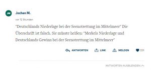 Die Europäer machen Ernst: Am Montag werden die EU-Außenminister bei einem Treffen in Brüssel nach WELT-Informationen die EU-Marinemission „Sophia“, die zwischen 2015 und 2019 rund 50.000 Menschen im Mittelmeer gerettet hat, endgültig beerdigen. Staatliche Seenotrettung auf dem Mittelmeer wird dann in absehbarer Zukunft nur noch auf Sparflamme stattfinden – im Rahmen der Mini-Operationen „Poseidon“ und „Themis“. Das haben insbesondere Österreich und Ungarn durchgesetzt. Beide Länder fürchten, die mit „Sophia“ verbundene Seenotrettung würde neue Migrantenströme anlocken und kriminellen Schleuserbanden in die Hände spielen. […]
