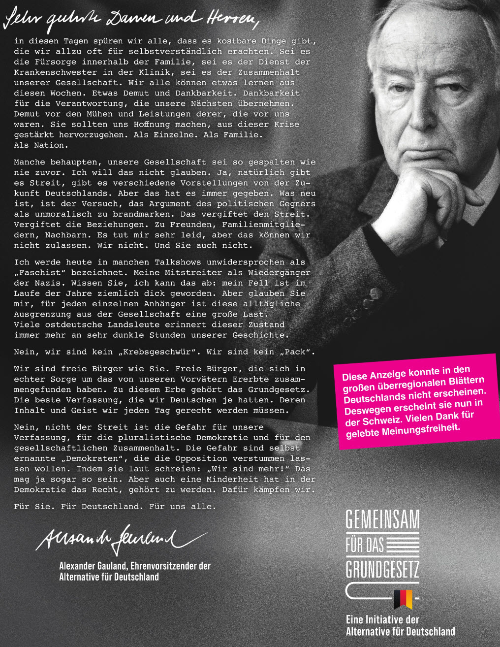 … ihres Ehrenvorsitzenden Alexander Gauland schalten.