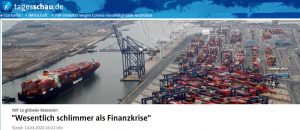 … Der Internationale Währungsfonds (IWF) rechnet mit der schwersten globalen Rezession seit fast hundert Jahren. Die Wirtschaftsleistung könnte um drei Prozent schrumpfen, erklärte der IWF in seiner jüngsten Prognose zur globalen Konjunkturentwicklung.