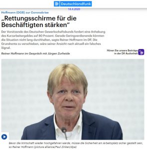 Das komplette Interview des Dlf vom 14.4.2020 mit Reiner Hoffmann hören: