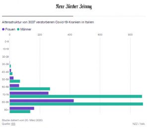 … dass Corona-Toten medial so extraordinär hervorgehoben werden, erweckt beim Normalbürger den Eindruck, Deutschland stürbe vor allem an Corona. Nein, auch in Deutschland sterben Menschen ganz normal. Im Durchschnitt 2.500 Menschen pro Tag!! Für einige alte, schwache und kranke Menschen ist die Corona-Infektion das Signal, vor ihren Herrn zu treten. Für viele andere alte, kranke und schwache Menschen ist es eine andere Infektion, ist es die Grunderkrankung oder einfach das Alter, welche zum Tod führen. Es sterben auch im Verhältnis wenige Menschen, wenn sie noch unter 60 sind, an Vorerkrankungen plus Corona. Doch normal gesunde Menschen bis 70 Jahren und auch noch gesunde ältere stecken eine Corona-Erkrankung weg. wie eine normale Grippe. Im Grund ist das Corona – Virus m. E. ein weiteres Grippevirus. Eins von über 1.000.