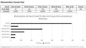 - Die wichtigste Info ist, dass das Durchschnittsalter der Menschen, die an oder mit Corona versterben, bei 80 Jahren liegt.