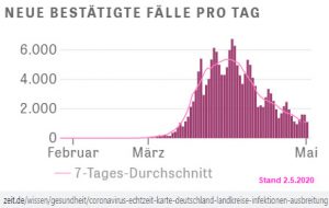 Von einer zweiten Welle keine Spur, die Anzahl der Neuinfizierten läuft langsam aber sicher aus. Spätestens Ende Mai ist Schluss.