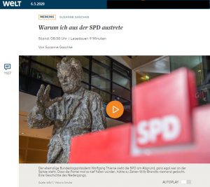 Für mich als Journalistin war es immer ein Nachteil, und nur ein Nachteil, Parteimitglied zu sein. Anders als in den Sechziger- und Siebzigerjahren ist ein politisches Bekenntnis in den Medien seit Langem ein No-Go, und ein Bekenntnis zur SPD ist es erst recht. Ich trat trotzdem nicht aus, weil ich das als opportunistisch empfunden hätte. Aber ich musste viel dafür einstecken.