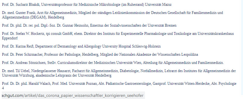Zentrale Figur im Bereich der inhaltlichen Analyse ist der Arzt und Achgut-Autor Frank, der die Kontakte zu den bereits erwähnten Kapazitäten herstellte. Diese wenden sich an Innenminister Seehofer, der diese Pressemitteilung herausgab.
