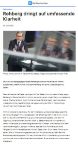 Der CDU-Bundestagsabgeordnete Rehberg hat seinen Parteifreund Amthor aufgefordert, offene Punkte im Zusammenhang mit seiner Lobbytätigkeit zu klären.