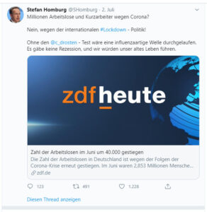 … „Das alles ist Ausdruck der völligen Ignoranz gegenüber den objektivierbaren Gefahren. Diese Krise ist auch Ausdruck der ideologischen Verblendung der politischen Rechten in diesem Land. Es gibt ein Klima der Wissenschaftsfeindlichkeit. Es gibt ein Klima der Elitenfeindlichkeit. Es gibt ein Klima der Feindseligkeit gegenüber den staatlichen Institutionen, die sich Donald Trump zunutze macht.“ Anthony Fauci, der oberste US-Epidemiologe, habe vermutlich Recht, wenn er sage, dass das Land ein dramatisches Bildungsproblem habe.