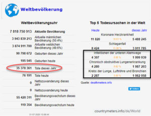 - Tote gesamt weltweit: 35.378.361