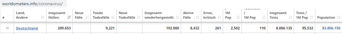 Aktuelle Fälle Deutschland: 8.432 (0,01% der Bevölkerung)