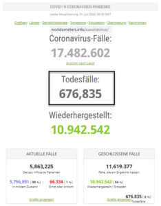 - Corona-Tote weltweit: 676.835
