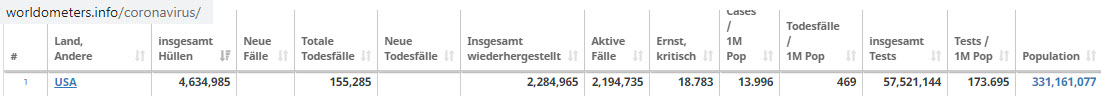 *Dynamische Quelle Worldometer: Hier klicken