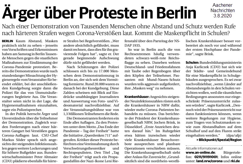 Am 1.8.2020 fand in Berlin die Großdemo statt: