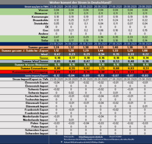 Prolog: 3. Juli 2020, 20:15: Sonne und Wind liefern mit Mühe knapp 27% des in Deutschland benötigten Stroms, als Svenja Schulze, in der Tagesschau den vom Bundestag abgesegneten Kohleausstieg mitteilt und freudig erregt erklärt, dass „Deutschland damit weltweit das erste Industrieland sei, das sowohl die Atomenergie als auch die Kohle hinter sich lässt“.