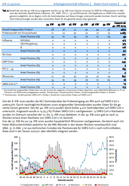 Die Covid-19-Rate ist so gering, dass nicht mal eine separate Corona-Linie angelegt wird. Wenn Sie wissen wollen, warum das so ist, wie die zahlenmäßige Entwicklung KW 8 bis KW 39 aussieht: Hier klicken.