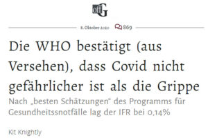 - Corona 3: WHO – Corona nicht gefährlicher als Grippe