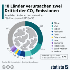 10 Länder verursachen zwei Drittel der CO₂-Emissionen