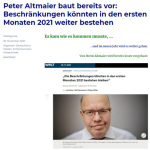 - Peter Altmaier – 2021 Einschränkungen weiter wahrscheinlich