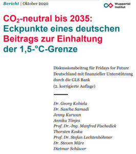 Dies wird auch im Diskussionsbeitrag des Wuppertal Instituts für Fridays for Future Deutschland vom Oktober 2020 (finanziell unterstützt durch die GLS BanK) deutlich.