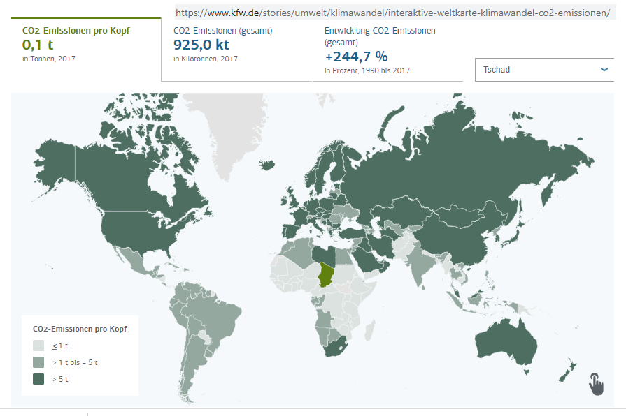 Ich schlage vor, die deutsche Bevölkerung zieht z. B. in den Tschad. Dort bauen wir uns ein Leben auf, das dem der dortigen Einwohner ähnlich ist. Dann bleibt der CO2-Ausstoß dort so gering wie heute. Wir retten die Welt. Und sind gleichzeitig Vorbild für alle anderen Menschen auf der Erde.