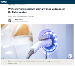 Scharfe Kritik an den Plänen des Ministeriums äußert die Autoindustrie: „Was Spitzenglättung genannt wird, bedeutet für die Kunden leider Abschalten“, sagte die Präsidentin des Verbandes der Automobilindustrie (VDA), Hildegard Müller, WELT AM SONNTAG. „Wenn das kommt, wäre es sehr schlecht für alle Besitzer von E-Autos und die Unternehmen, die jetzt E-Autos auf den Markt bringen.“