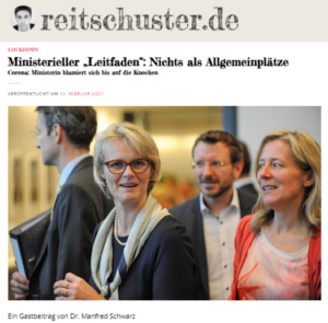 … – ihres Zeichens Bundesbildungsministerin – einen groß angekündigten „Corona-Leitfaden“ vorgelegt. Thema: „Maßnahmen zur Prävention und Kontrolle der SARS-CoV-2-Übertragung in Schulen.“ …