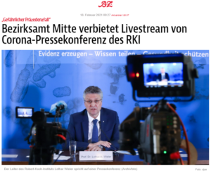 Das Bezirksamt Berlin-Mitte hat einem ARD-Bericht zufolge der „Tagesschau“ untersagt, eine gemeinsame Pressekonferenz der Behörde mit dem dortigen Bezirksbürgermeister Stephan von Dassel (Grüne) und dem Robert Koch-Institut (RKI) live ins Internet zu übertragen.