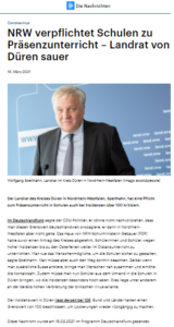 Der Landrat des Kreises Düren in Nordrhein-Westfalen, Spelthahn, hat eine Pflicht zum Präsenzunterricht in Schulen auch bei Inzidenzen über 100 kritisiert.