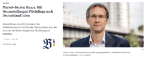 1. Knaus ist der geistige Vater des EU-Türkei-Deals über Migranten, der nicht funktioniert. Das ist nur EIN Beispiel dafür, mit was für Chaoten sich Merkel umgibt. Ein anderer solcher Chaot ist Matthias Jung von der ‚Forschungsgruppe Wahlen‘. Das ist einer der Haupt-Verantwortlichen dafür, dass die CDU so auf links gedreht wurde. Warum wird das nicht in der Presse thematisiert? Teils, weil die es selbst nicht wissen, teils, weil die das ja gut finden und nicht daran rühren wollen.