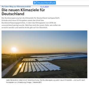 … für Deutschland nachgeschärft. Gründe sind neue EU-Vorgaben sowie das Urteil des Bundesverfassungsgerichtes, in dem das Klimagesetz von 2019 als unzureichend gerügt wurde. Welches sind die neuen Ziele, wie sollen sie erreicht werden und welche Kritik gibt es? Ein Überblick.