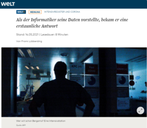 Das DIVI sah das wohl genauso. Es gibt eine ausführliche Korrespondenz zwischen deren Presseabteilung und Lausen, die uns vorliegt. In einer Mail vom 4. Mai stellt deren Pressesprecherin sogar dem Programmierer Tom Lausen sieben Fragen – mit der Bitte um Beantwortung bis um 11 Uhr des kommenden Tages. Die letzte Frage lautete: „Wovon müssten ihrerseits Maßnahmen der Bundesregierung in der Pandemie abhängig sein? Oder was wäre eine Idealvorstellung?“