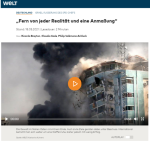 Walter-Borjans hatte sich zum Existenzrecht und zum Selbstverteidigungsrecht Israels bekannt, im Gegenzug für deutsche Waffenlieferungen an Israel aber ein politisches Mitspracherecht gefordert. Waffenlieferungen an Israel seien „keine Frage eines prinzipiellen Ausschlusses“, sagte er laut „Tagesspiegel“ am Montag. „Aber wir haben dann auch den Anspruch, ein Stück gehört zu werden, wenn es darum geht, deeskalierend zu wirken, sich einer Zwei-Staaten-Lösung zu öffnen, Verhandlungen zu führen.“