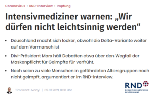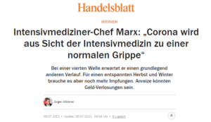 … per Stakkato seit Wochen täglich auf die Bevölkerung die Delta-Gefahr = besonders ansteckend eingehämmert wurde, wagt Ober-Panikprofesser DIVI-Marx dieses: