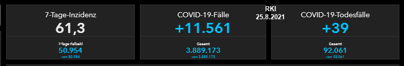 Am 25.8.2021 lag die COVID-Inzidenz bei 61,3 Fällen