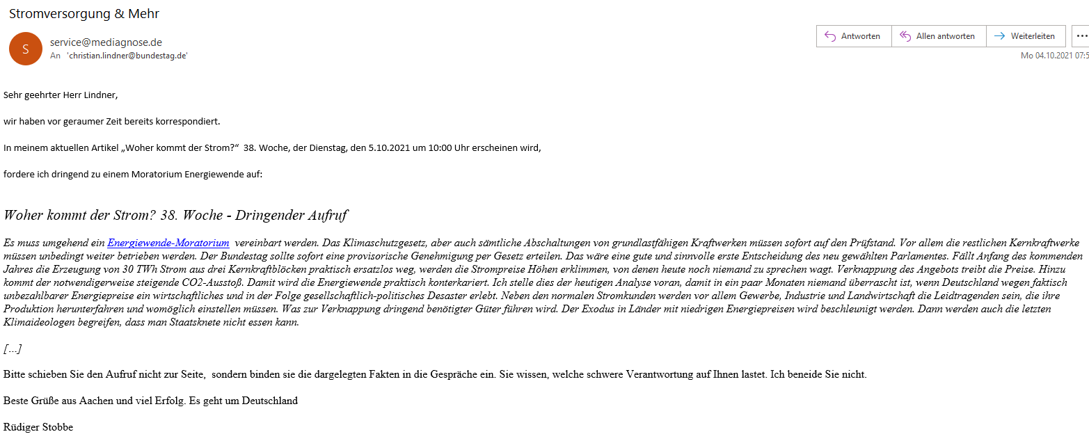 Ich habe Christian Lindner heute morgen diese Mail geschrieben: