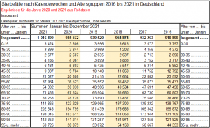 Und nun stehen da am 17.1.22 bereits 21.251 Todesfälle zu Buche.