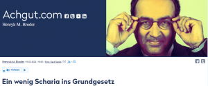 Im Netz macht derzeit ein kurzer Video-Clip [siehe oben, R.St.] die Runde, in dem Omid Nouripour, der neue Co-Vorsitzende der Grünen, zu sehen und zu hören ist, der offenbar vollnüchtern erklärt, es gebe Teile der Scharia, die mit dem Grundgesetz vereinbar sind und übernommen werden könnten.