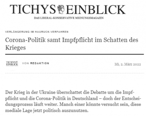 Mit dem Aufrüstungsprogramm der Bundeswehr, der Energiepolitik sowie den zahlreichen anderen Maßnahmen in Reaktion auf den Angriff auf die Ukraine, liegt der Fokus der Ampel-Koalitionen jetzt auf ganz anderen Fragen. Die Impfpflicht verliert damit auch ihre symbolische Wichtigkeit als erstes großes Vorhaben von Bundeskanzler Scholz – die ohnehin unpopulär gewordene Maßnahme jetzt zu beerdigen, wäre weitaus einfacher als noch vor wenigen Wochen.