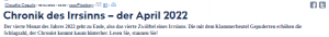 Realsatire aktuell: Casula – Chronik des Irrsinns 4/2022 Irrsinn des Monats April 2022 lesen __________ Alle bisher erschienenen Chroniken des Irrsinns