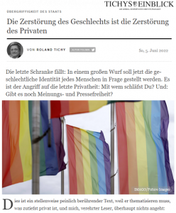 Das geplante Selbstbestimmungsgesetz ist deshalb für die Fortpflanzung der Menschen, für den Fortbestand der Menschheit irrelevant.