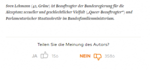 Die Meinung der meisten Leser des Artikels ist ganz klar rassistisch, sexistisch und homo-, trans- und sonst wie feindlich. Kurz: