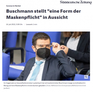 Nein, die Maske ist das nach außen sichtbare Zeichen, dass der Bürger von der Hygienediktatur weiter gegängelt, schärfer gesagt, unterdrückt wird.