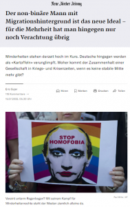 Gesellschaft & (Trans-) Gender aktuell: Die NZZ spricht es aus – Es ist das Grauen … … zumindest für den normalen Mann, die normale Frau und deren beider Kinder Quelle Artikel & PDF ________ Achgut: Die Verächtlichmachung