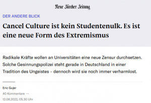 Deutschland & Gesellschaft & Politische Kultur aktuell: Die NZZ traut sich … Quelle Artikel ________ Cancel Culture-Artikel bei MEDIAGNOSE