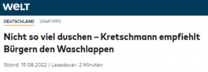 Deutschlands Politiker überbieten sich angesichts der steigenden Gaspreise mit Spartipps. Ministerpräsident Winfried Kretschmann etwa rät den Deutschen nun zur Minimalhygiene. […]