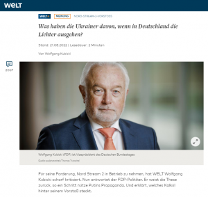Der Vorstoß und die Forderung von Wolfgang Kubicki vom 18.8.2022 Nordstream II zu öffnen und die WELTplus**-Antwort (Leserabstimmung).