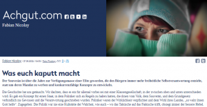 Liberale Ansichten sind aus deren Sicht ein Werk des Teufels. Es gibt dazu auch keine intellektuelle Auseindersetzung, es gibt schlicht Vorgaben, denen sich der Bürger zu beugen hat. Die allergrößte Unverschämtheit dieser Polithassardeure liegt in der Behauptung, dass Gegner ihrer Narrative die Demokratie gefährden. Dieser Schluss ist nun der Gipfel der Dreistigkeit. Sie schaffen die Grundrechte ab anhand herbeigezogener Notstände und weisen den Kritikern die Schuld zu, die Demokratie abschaffen zu wollen.