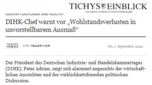 Dass Wladimir Putin „Spielchen“ mit Deutschlands Politelite spielt, ist offensichtlich. Schließlich hat die Bundesregierung die Sanktionen gegen Russland verhängt und trägt Sanktionen der EU mit. Deutschland liefert Waffen an die Ukraine- Die deutsche Außenministerin gibt unsägliche Sprüche von sich. Dass sich Russland mit seinen Möglichkeiten der Rohstoffverknappung wehrt, ist meines Erachtens verständlich. Wobei Wladimir Putin sicher kein Interesse daran hat, Deutschland wirtschaftlich in die Knie zu zwingen. Das ´schaffen wir` offensichtlich allein. Putin will, dass Scholz, Habeck & Co. „zu Kreuz kriechen“ und Nordstream II in Betrieb nehmen. Das reicht ihm wahrscheinlich. Dann hat er den von Deutschland angezettelten „Wirtschaftskrieg“ zu seinen Gunsten entschieden. Dann wird das Gas strömen. Womöglich aus beiden Pipelines. Wie durch ein Wunder ist Nordstream I dann fertig gewartet. So sind eben die „Spielchen“ des Wladimir Putin. Nur merken das unsere Politiker nicht. Sie wollen die Klima-Welt, die Ukraine, die westlichen Werte und vieles mehr „retten“ und bewirken genau das Gegenteil.